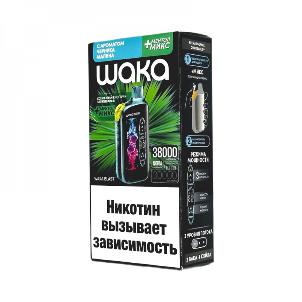 WAKA BLAST 38000 Hard - Черника малина + ментол микс - купить в Кургане
